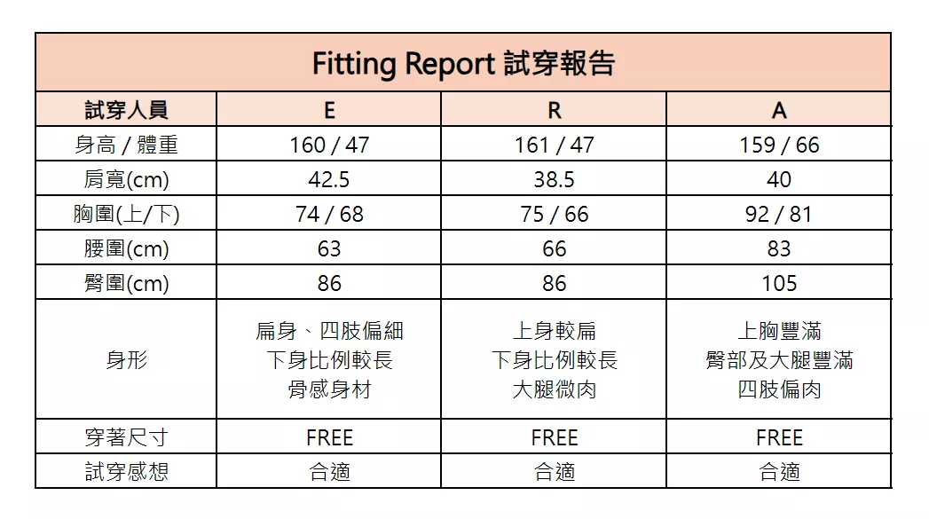 實穿人員(杏色): A編,Size FREE