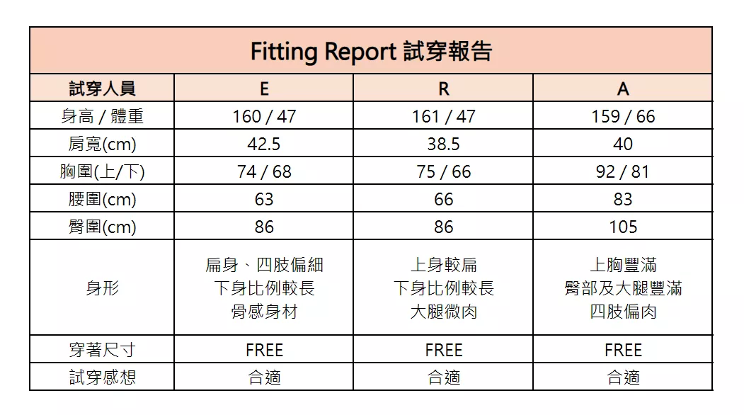 實穿人員(卡其色): E 編,Size FREE試穿報告請參考以下