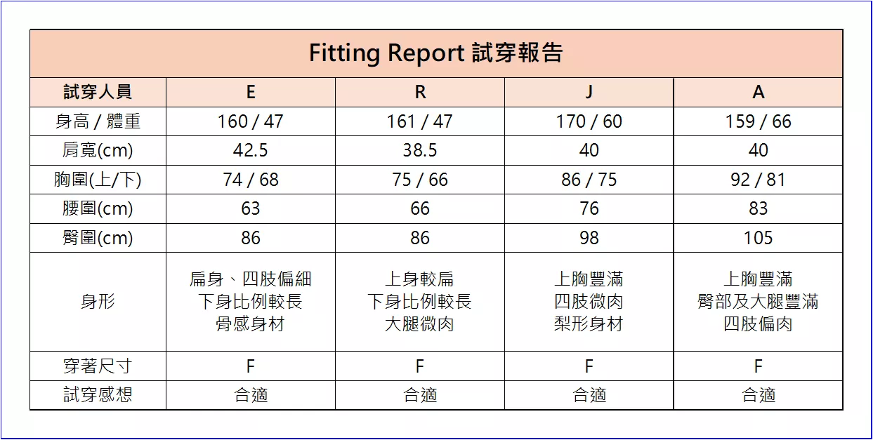 實穿人員 : R 編,Size FREE試穿報告請參考以下