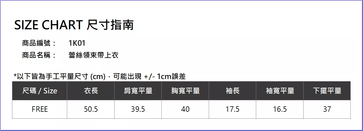 實穿人員 : R 編,Size FREE試穿報告請參考以下